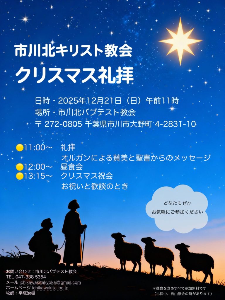 12月21日(日)は、クリスマス記念礼拝と祝会が行われます。この機会に、ぜひ足をお運びください。